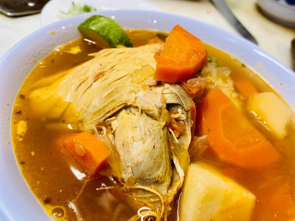 Mexican version of seafood soup made with vegetables and various fish. Served with corn tortillas.